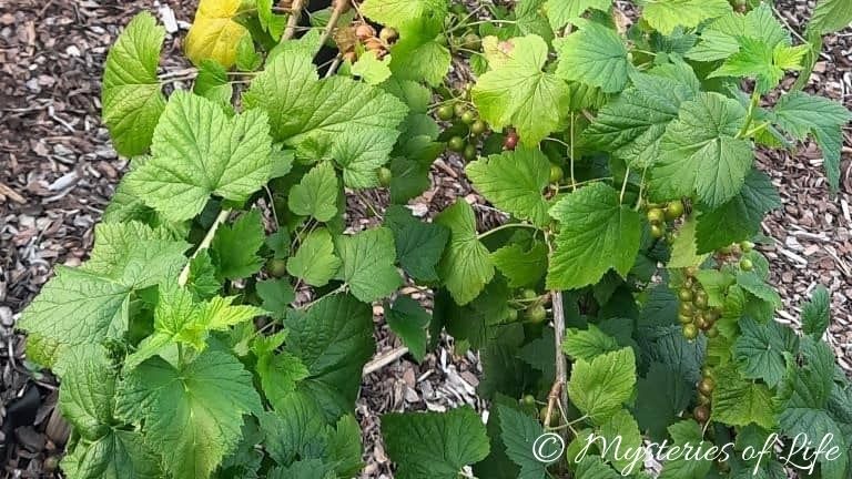 Krzew czarnej porzeczki z niedojrzałymi owocami